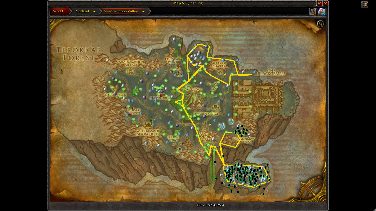 For this route, you will need to have 2 very important professions if you truly want to gather every mote/ primal of the Burning Crusade Expansion. However, they aren’t necessary for those who still want to make gold ;). To start things off. I will go over the route from bottom to top. Mostly, because you can skip the bottom loop if you want to.